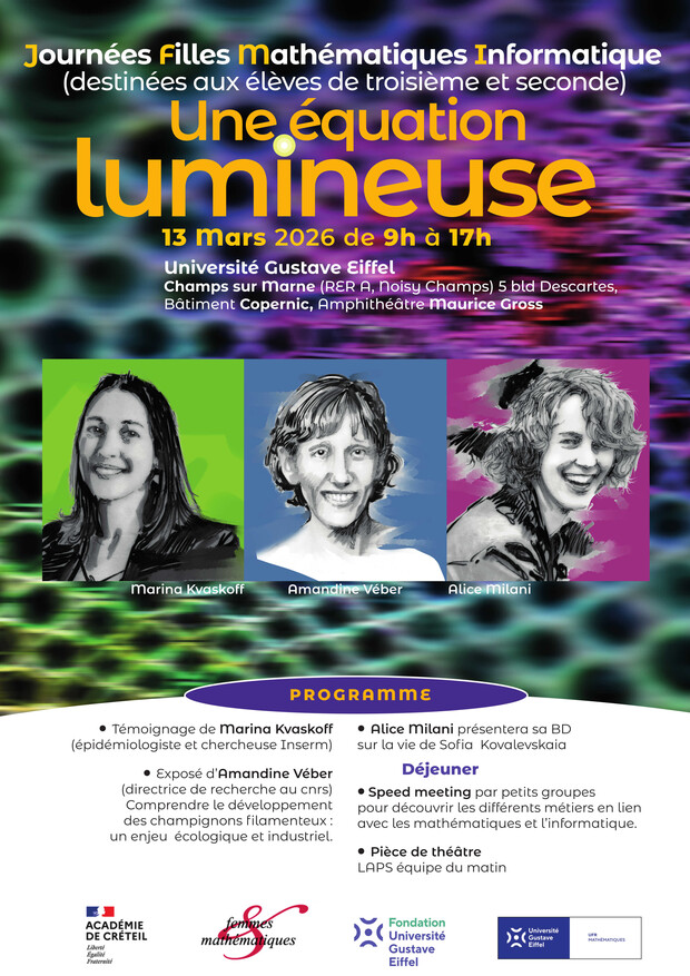 L'UFR de Mathématiques de l'Université Gustave Eiffel organisera une Journée Filles, Maths et Informatique le vendredi 13 mars 2026.